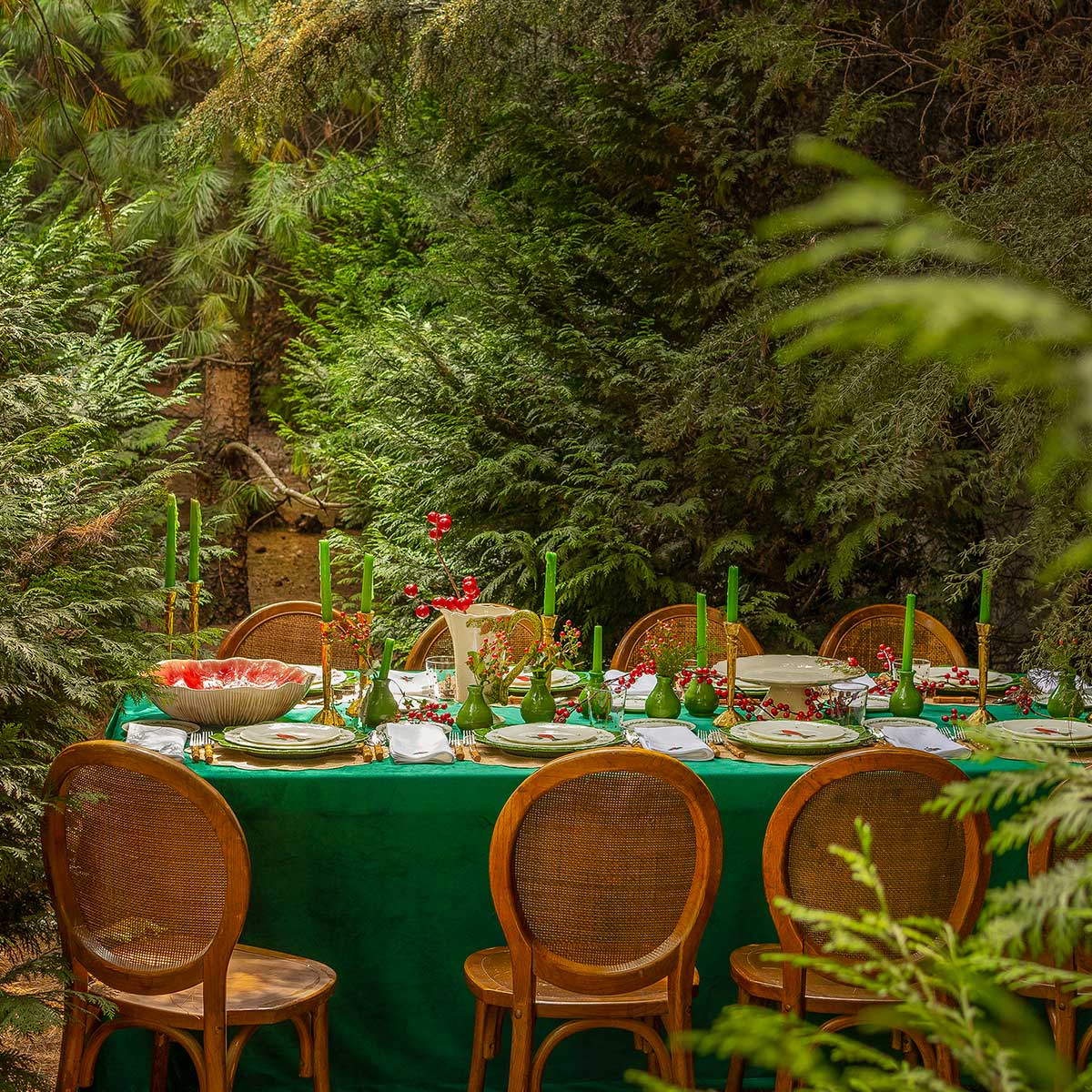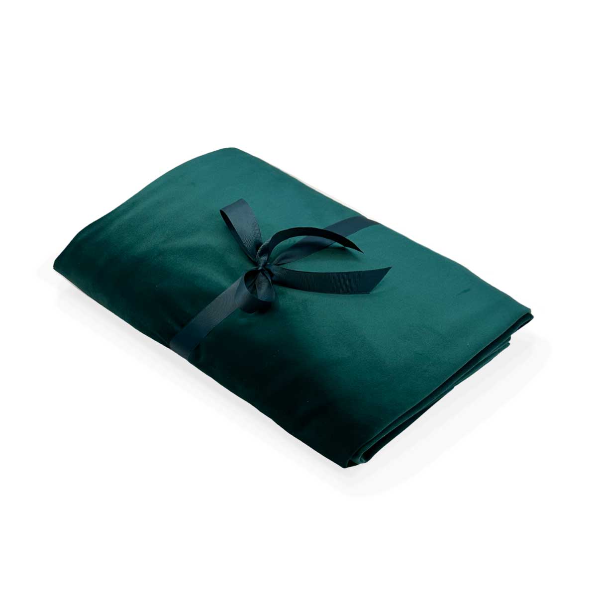 Mantel confeccionado en terciopelo verde increíblemente suave para llenar de vida tus mesas navideñas