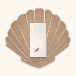Mantelería La Mar con Individuales Concha en Yute Ivory y Servilletas de Lino con Bordado de Caracol de Mar. Set para 4 personas