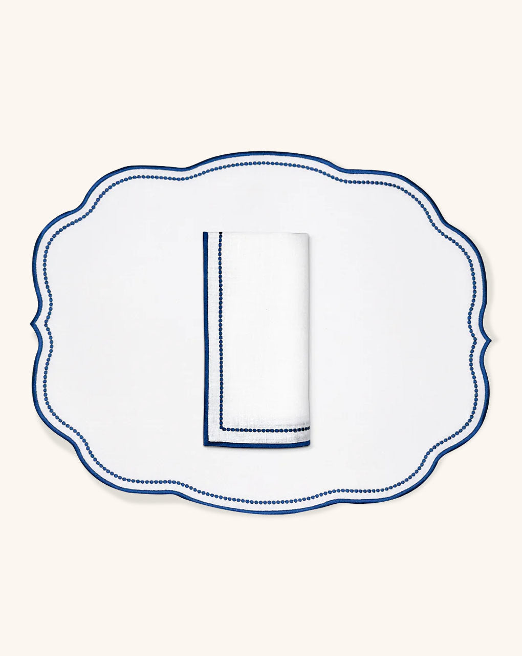 4 Individuales Sofía en Lino Blanco y Bordado en Azul
