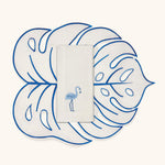 4 Individuales Tropic en Forma de Hoja Arena con Orilla Bordada en Azul