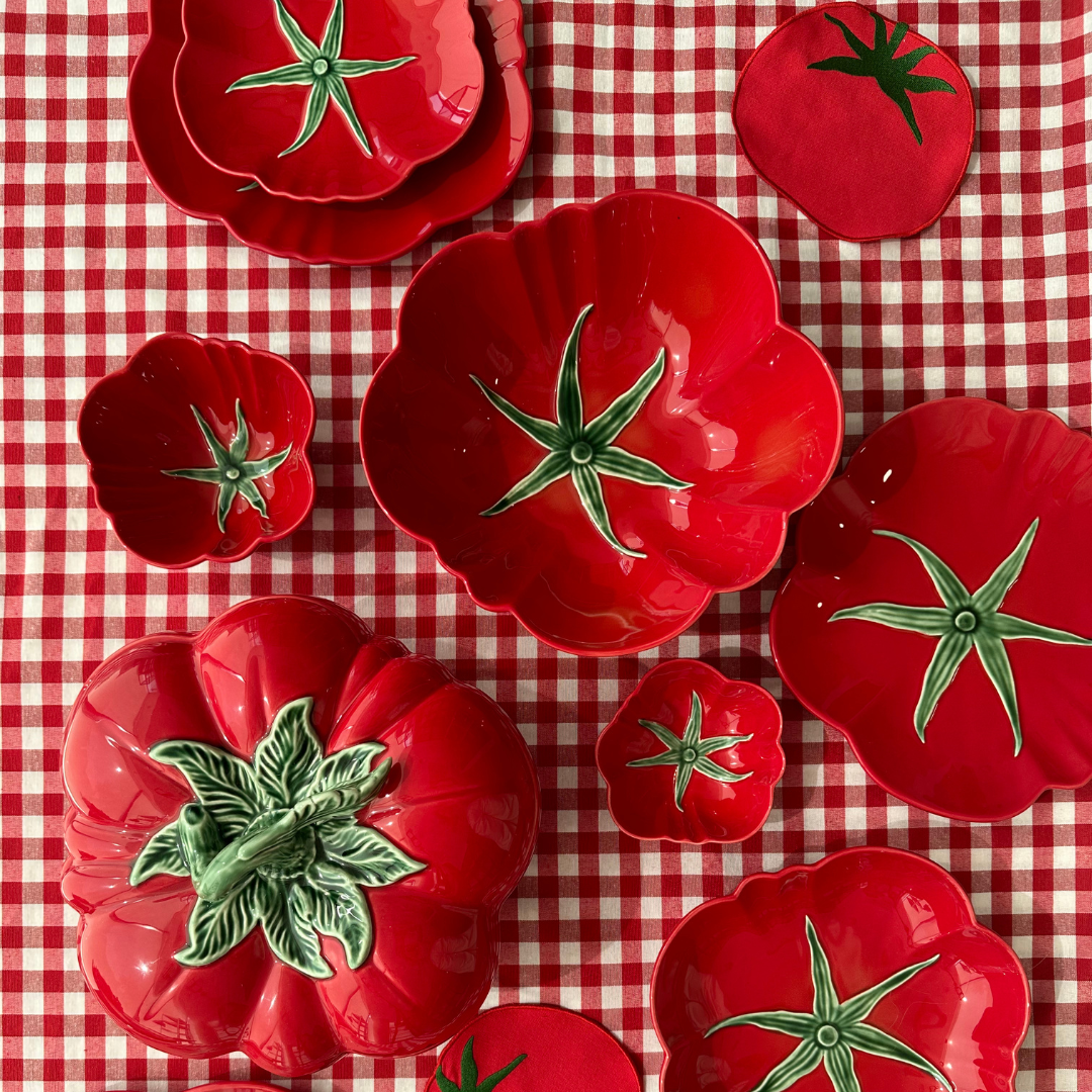 Juego de 4 platos de ensalada de 21 cm de Bordallo Pinheiro en forma de jitomate.