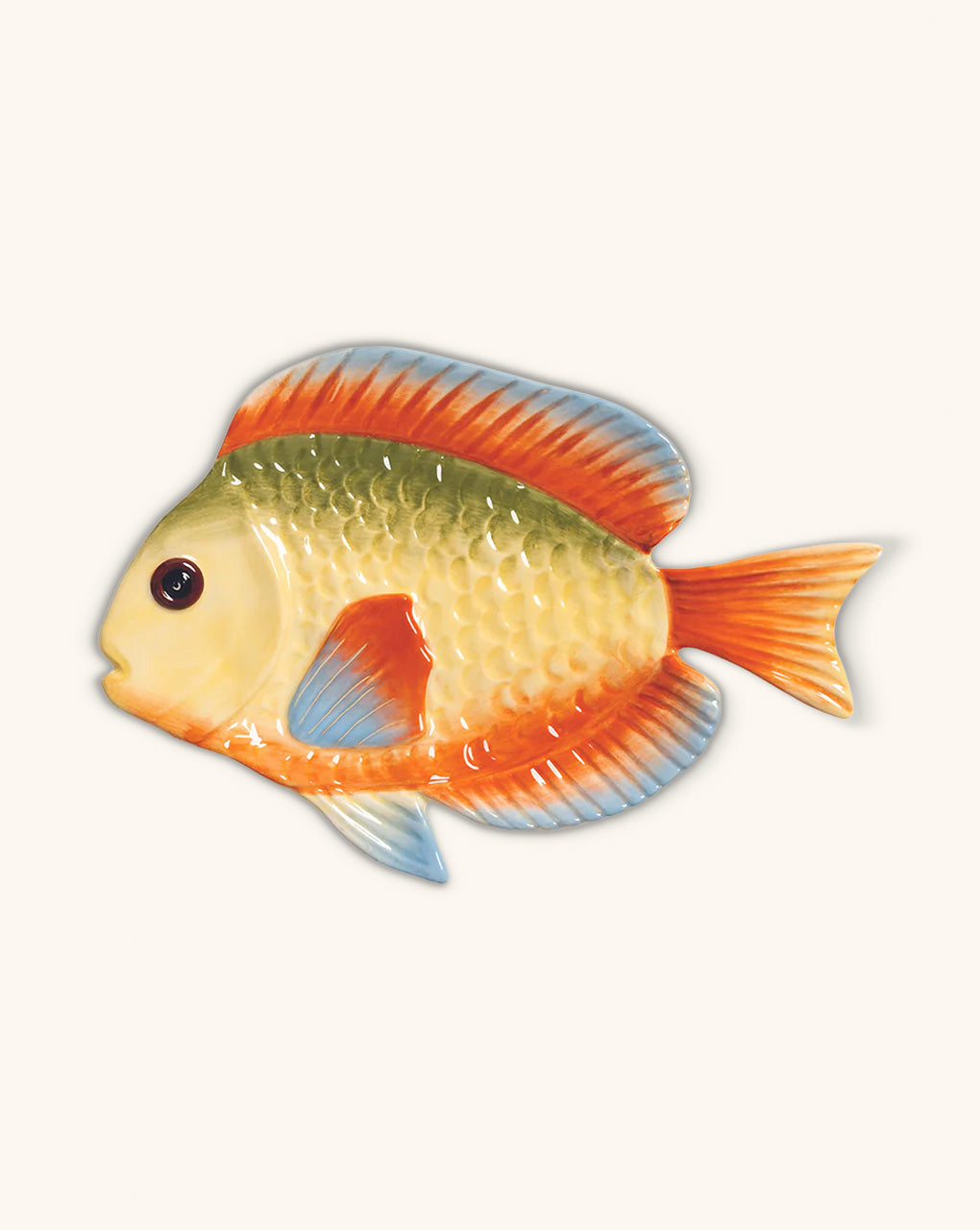 Este plato para servir en forma de pescado arcoíris está diseñado para añadir un toque alegre a tu mesa. El plato está pintado a mano con una combinación de colores espectacular. Disfruta sirviendo tu comida favorita o botana en este plato durante verano o en la playa.