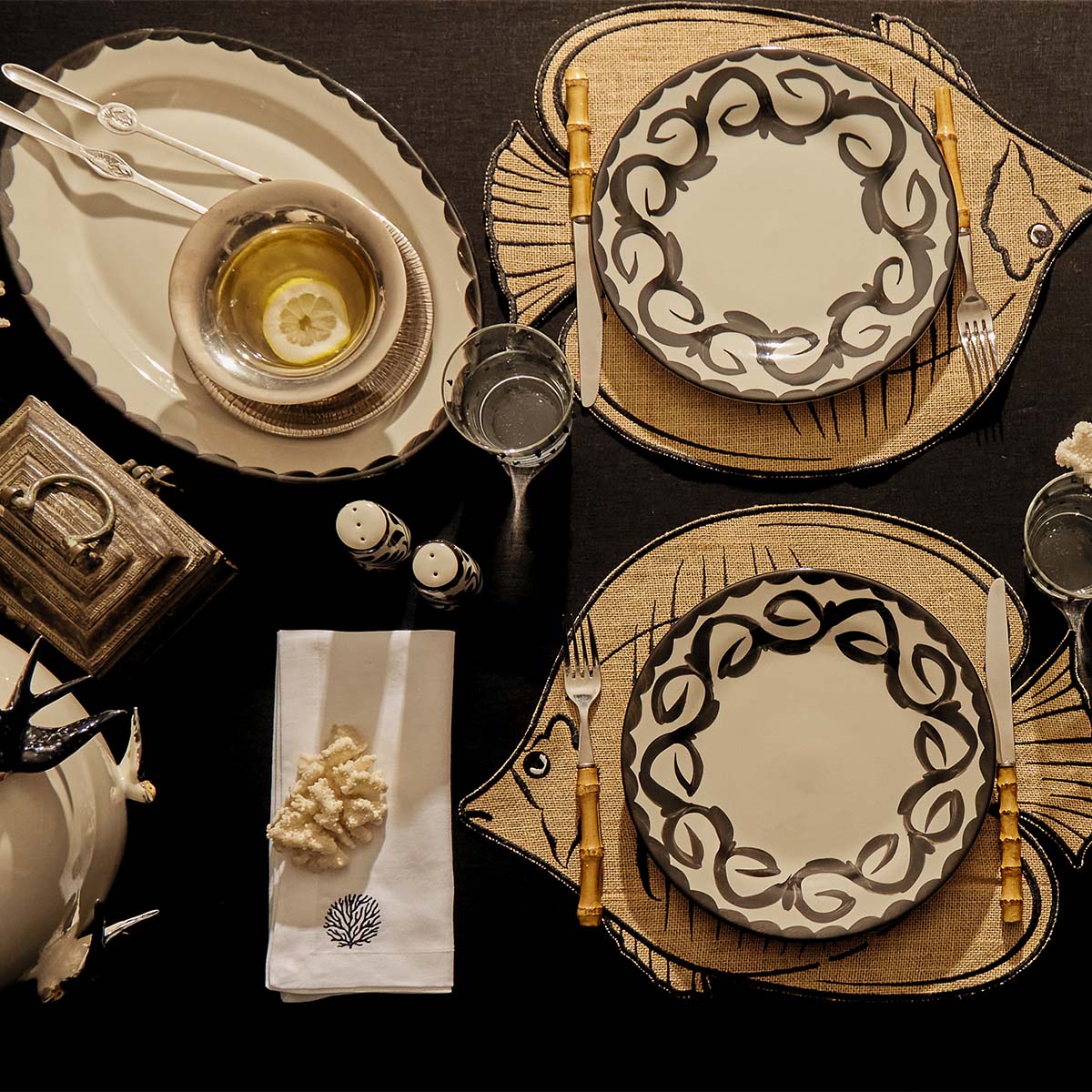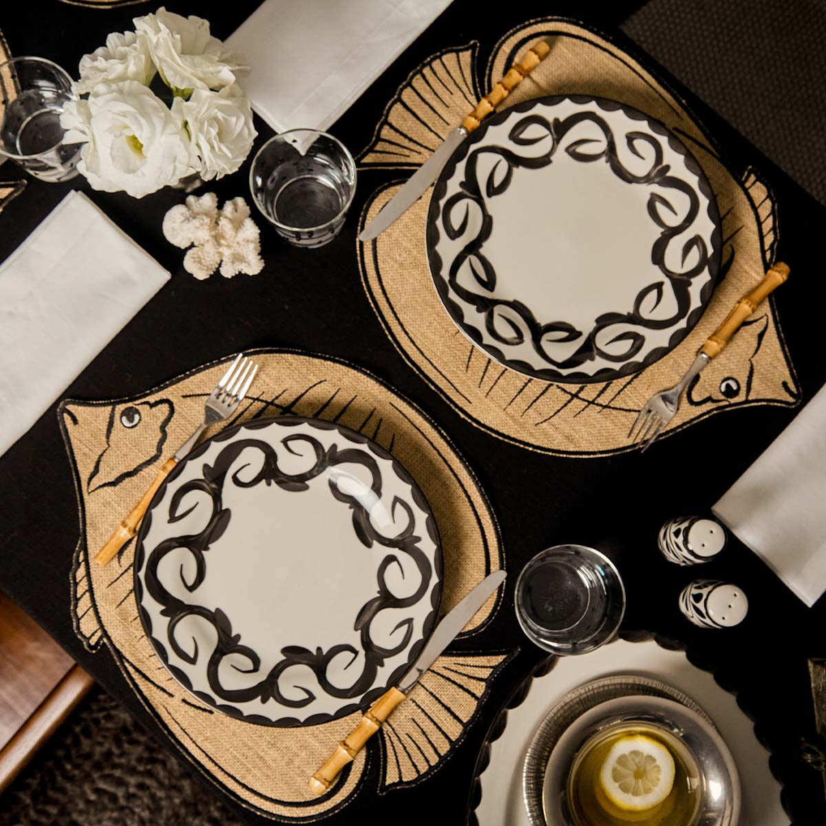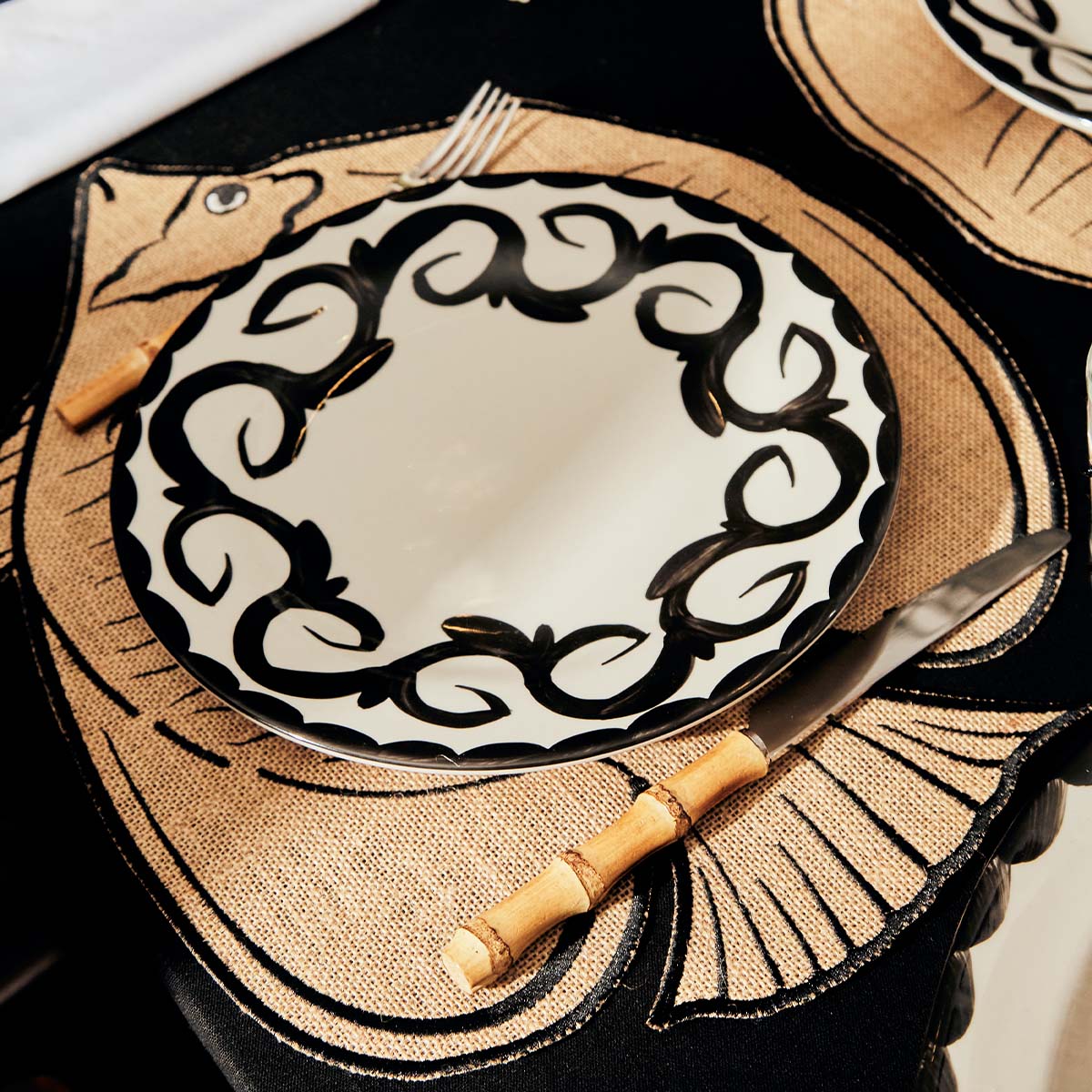 Plato Trinche 26 cm Puebla en Blanco y Negro. Set de 4