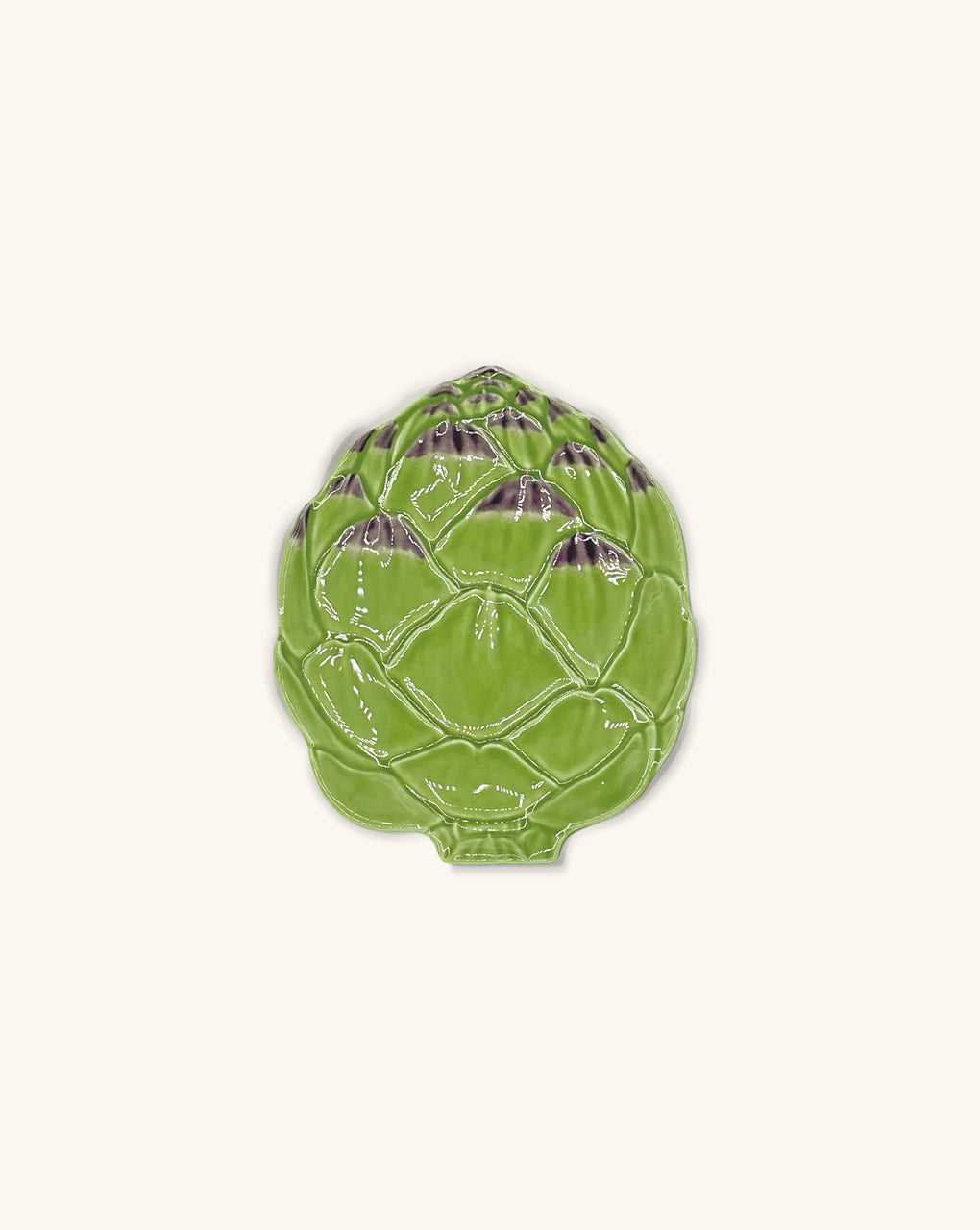 Juego de 4 hermosos platos para pan o postre de cerámica en forma de alcachofa en color verde de Bordallo Pinheiro. La pieza más espectacular para tu mesa.