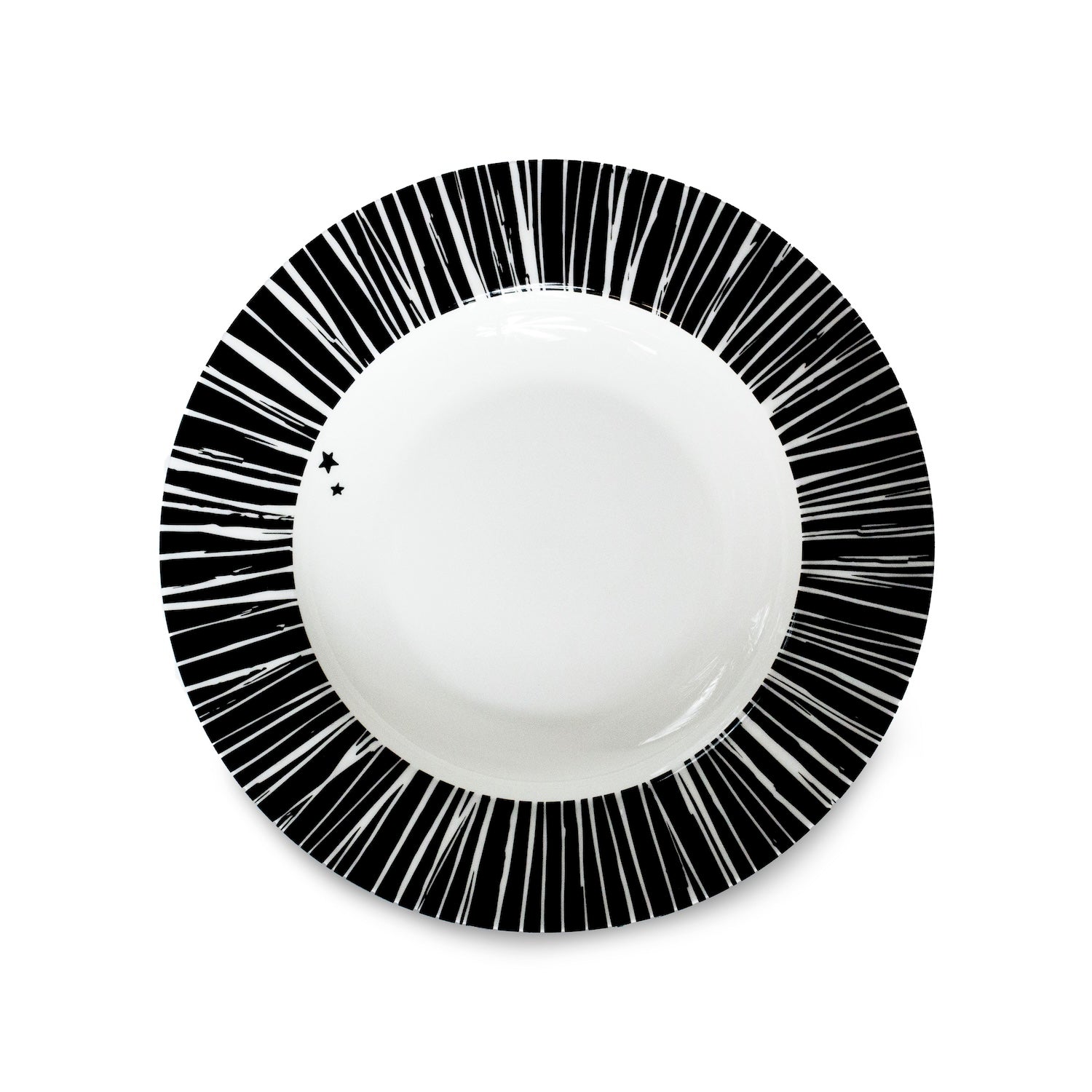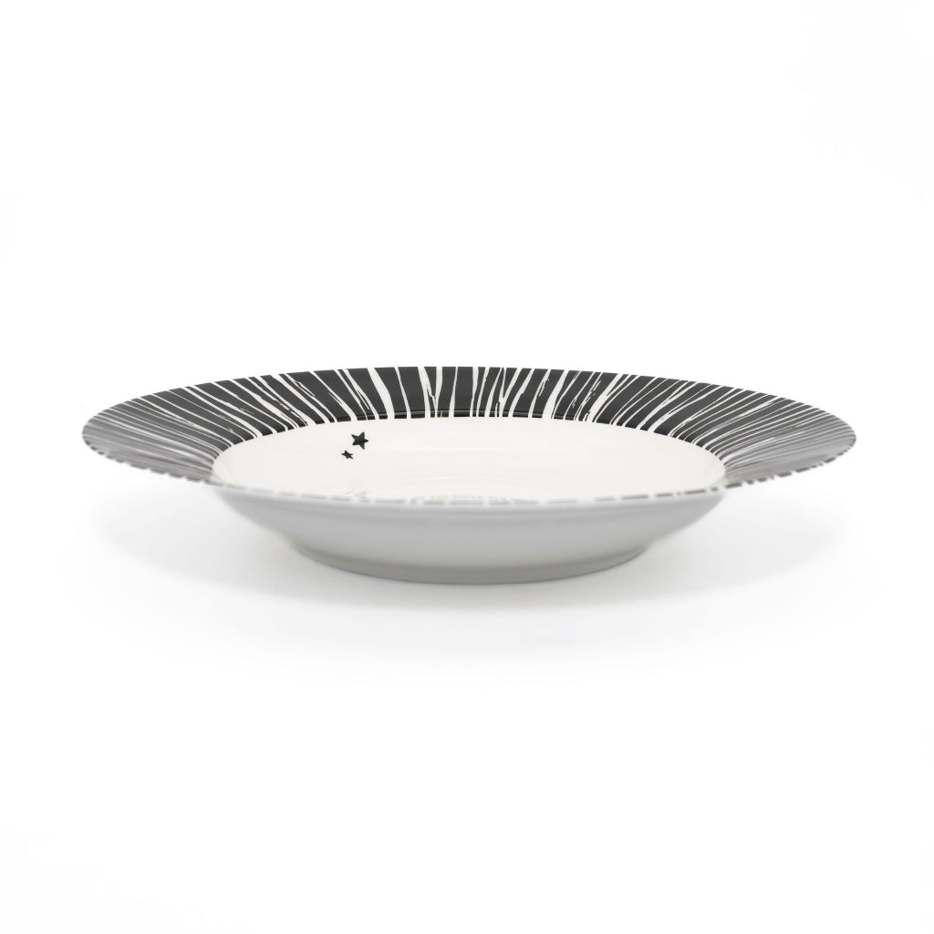 Platos Soperos Negros con Rayas Blancas, set de 4