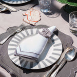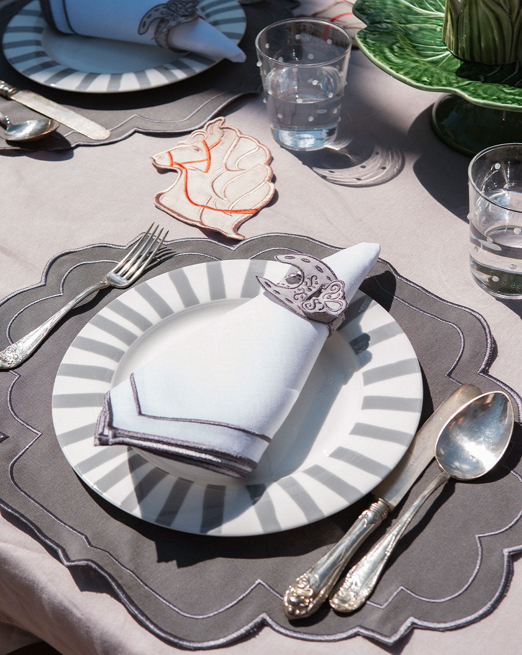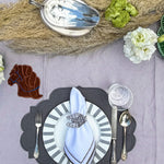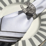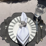 Servilletero de Herradura en Lino Gris Bordado. Set de 4