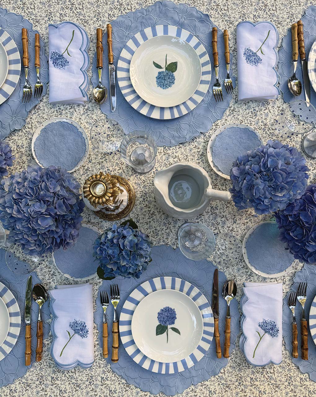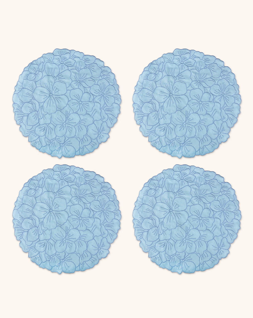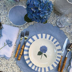 Coctelera Flor Hortensia en Loneta de Algodón Azul Pastel. Set de 4