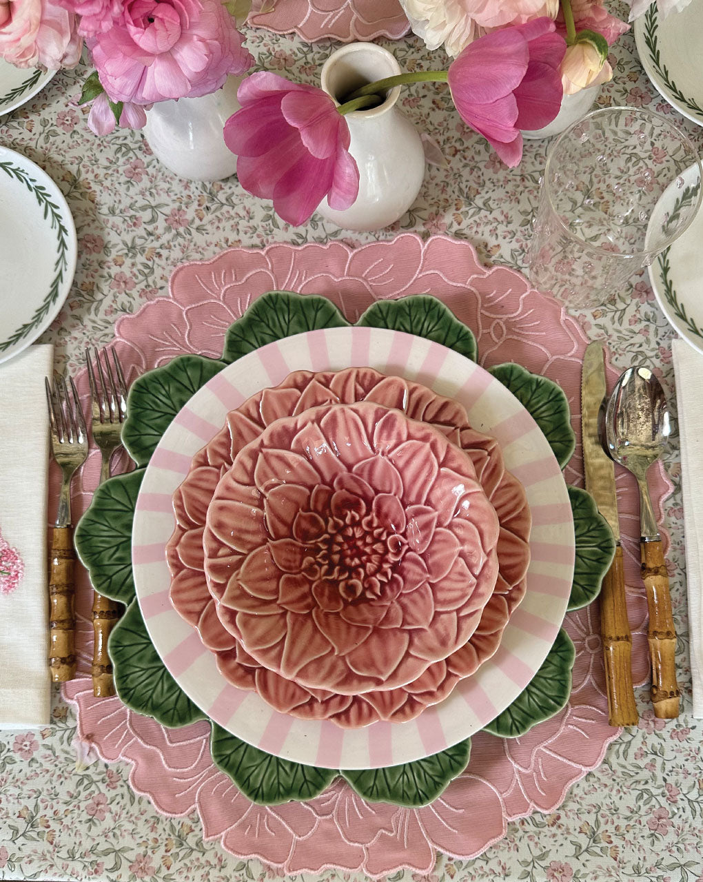 Los individuales de hibiscus son un clásico de Zash, bordados en forma de flor y perfectos para mesas de en el jardín o terraza. Ideales para la primavera y verano, pero también para interiores con un look de flores.