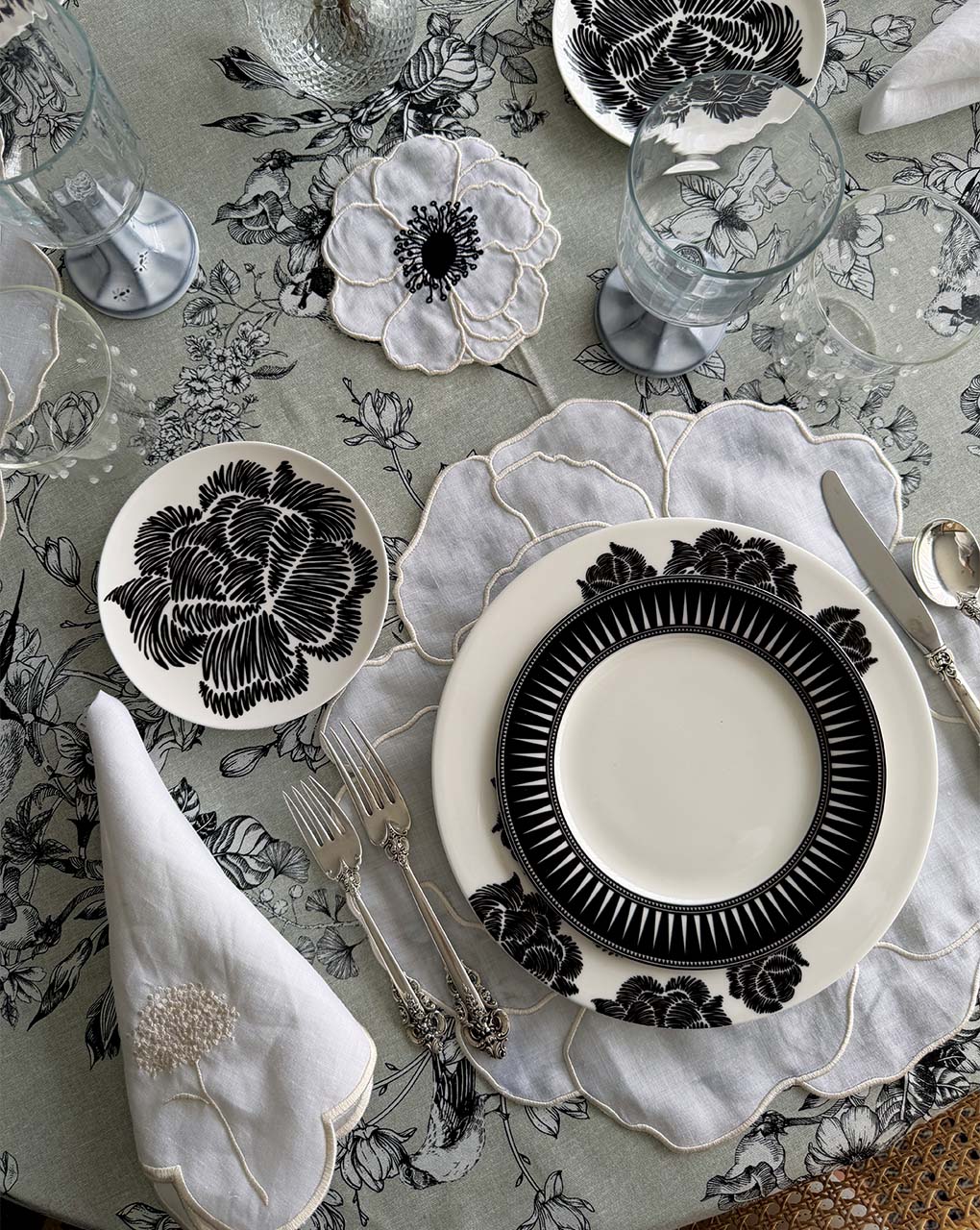 Las servilletas Bouquet de lino blanco con bordado de flor en ivory tienen un look sofisticado y elegante, perfecta para cualqueir mesa.