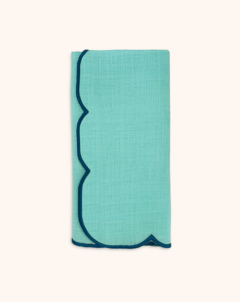 Servilleta Vivi en Lino color Turquesa con Bordado en Contraste. Set 4