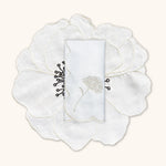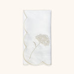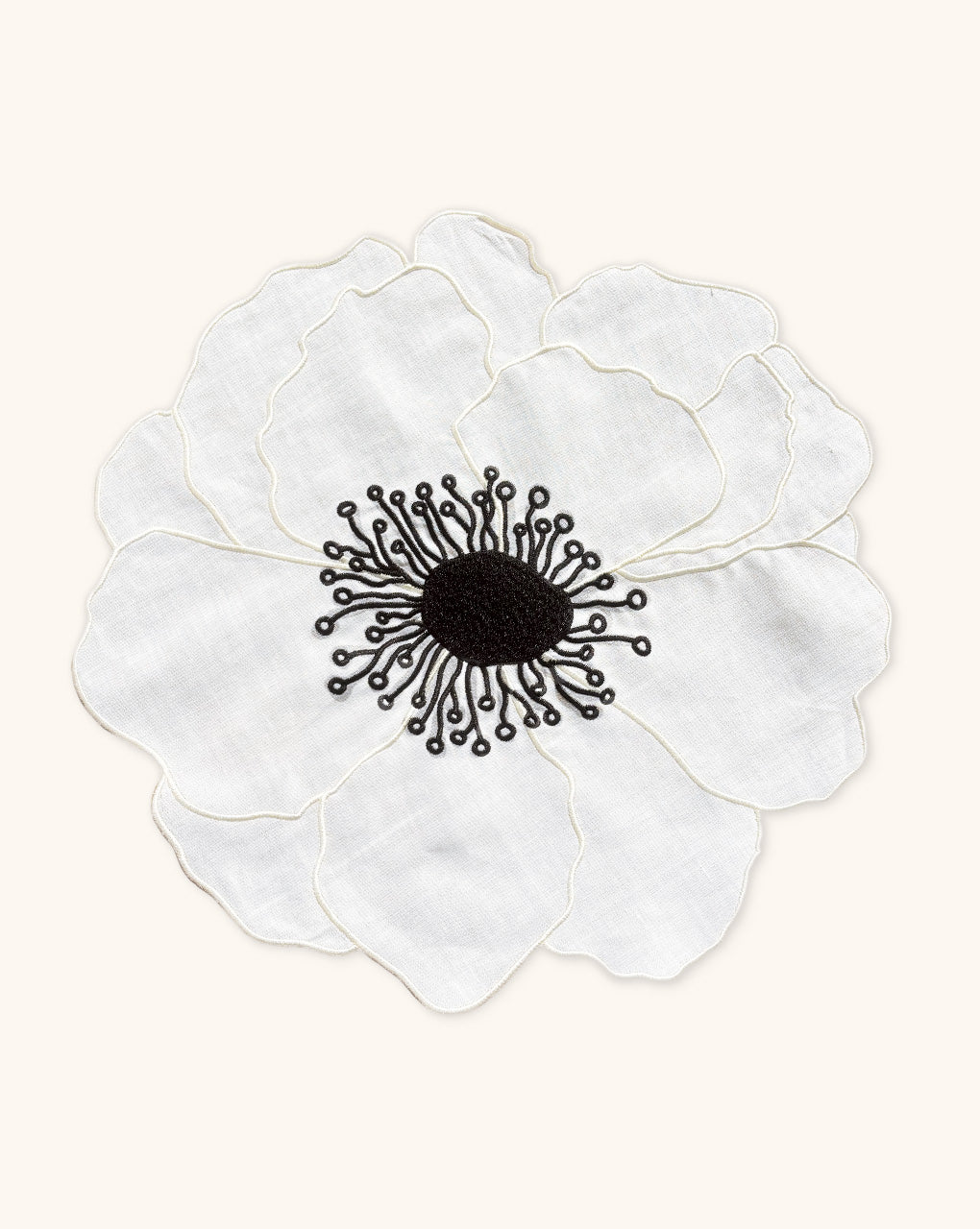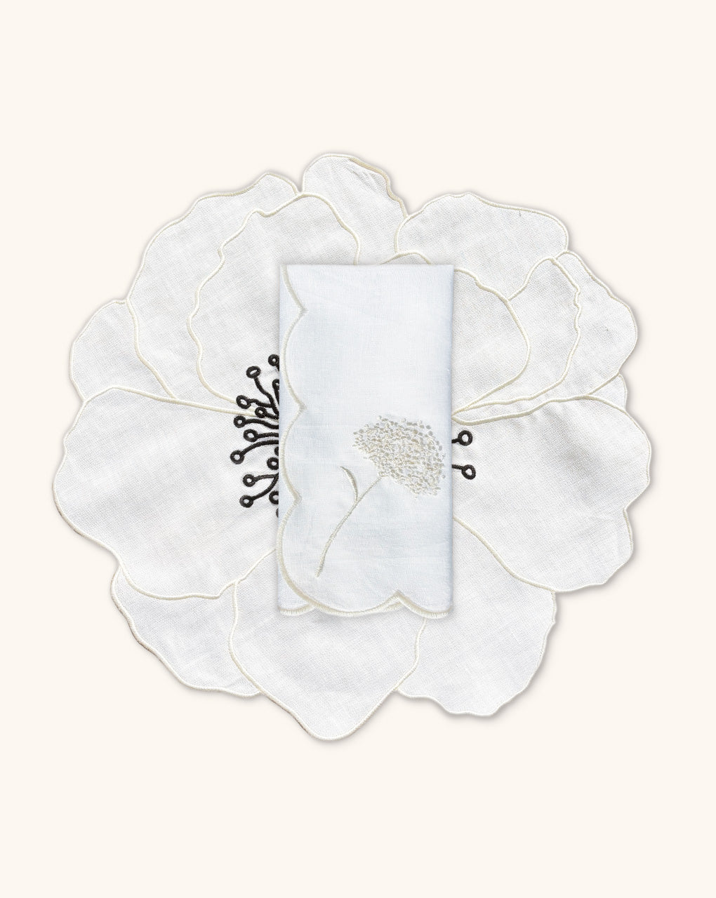 Set de Manteleria Flor Anémona en Lino Blanco con Servilleta de Lino Bordado en Ivory. 8 piezas