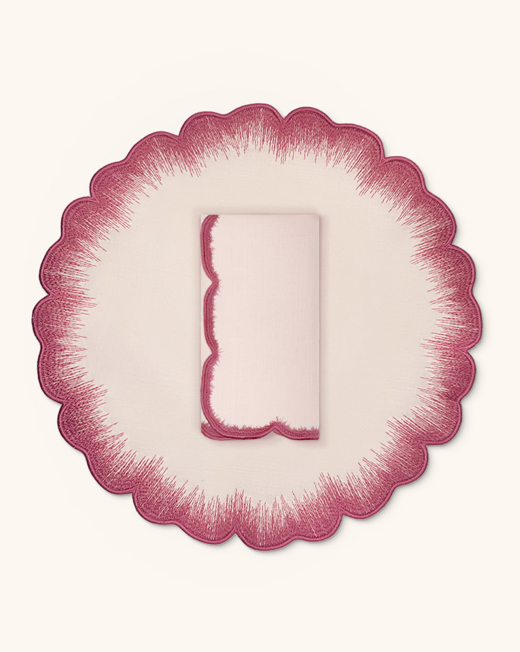 4 Individuales Vivi en Lino Rosa con Bordado de Pelitos.