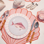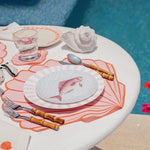 Un set marino de vajilla en colores alegres. Ideal para mesas de playa o para servir mariscos y transportarte a la orilla del mar.