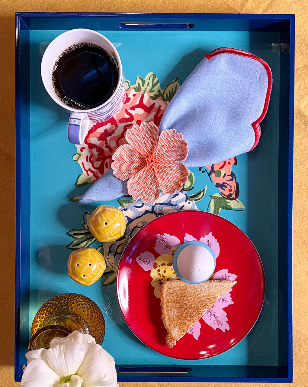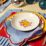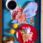 Dale a tu mesa esa chispa que invita a quedarse. Con el contraste vibrante entre el azul y el rojo, este set de servilletas transforma cualquier reunión en una celebración especial.