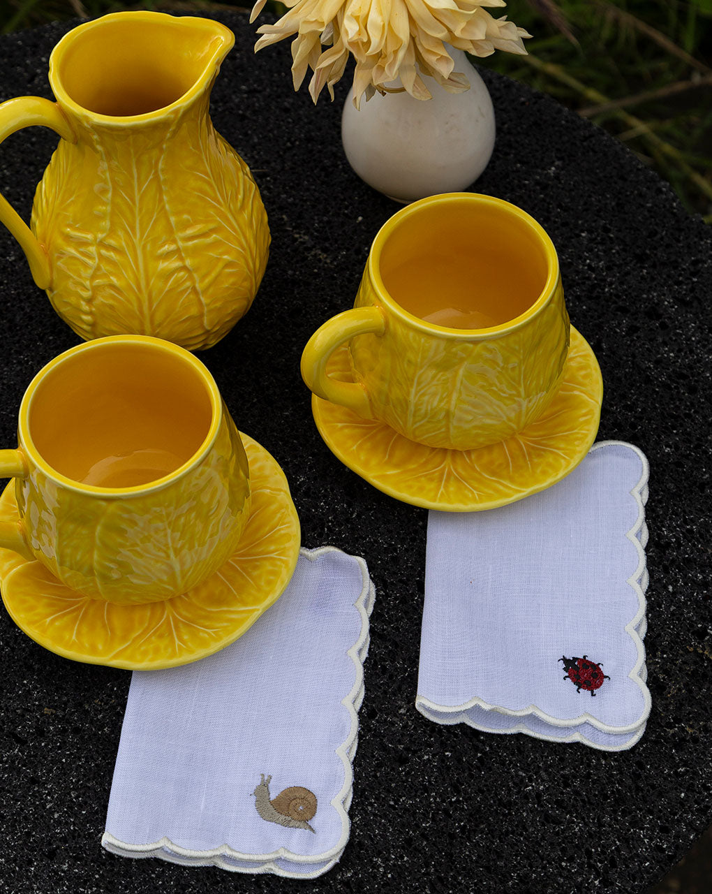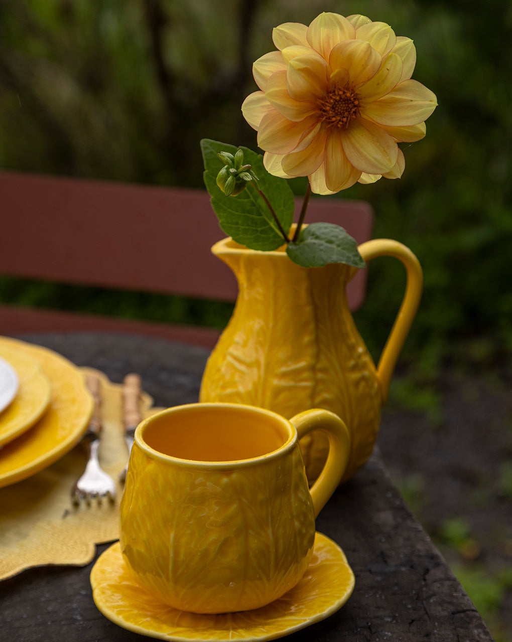 La icónica vajilla de repollo hecha en Portugal en exclusiva para Zash.Taza de té o café en cerámica amarillo canario, una pieza que será un clásico instantáneo. Ideal para combinar con otras vajillas, poner mesas hermosas y para usar toda la vida.