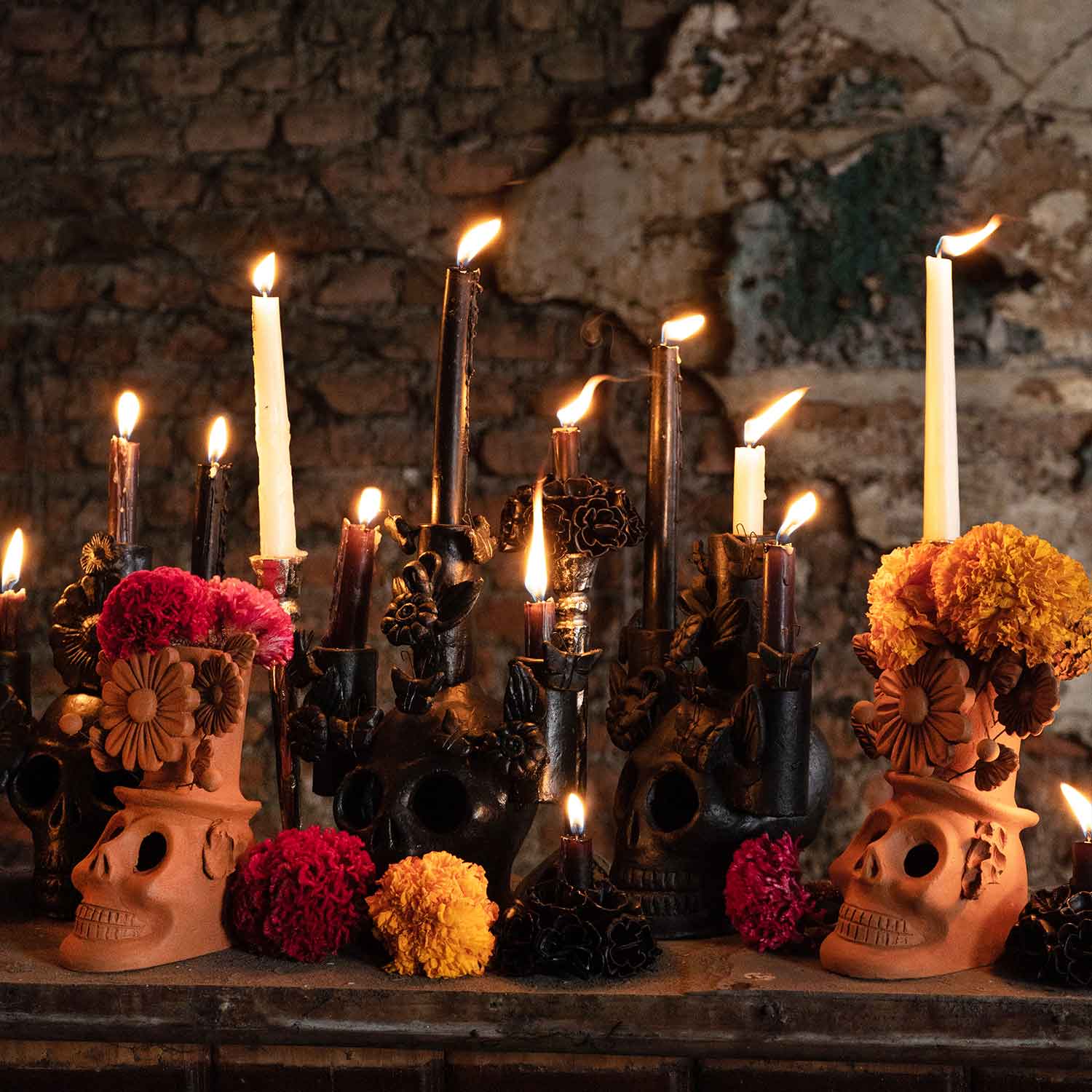 Vela Chica con Decoración de Flores de Cera en Color Negro.