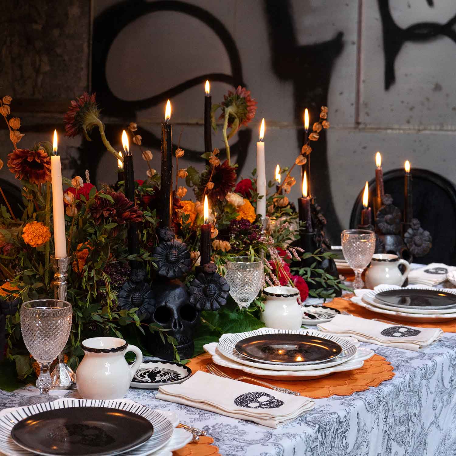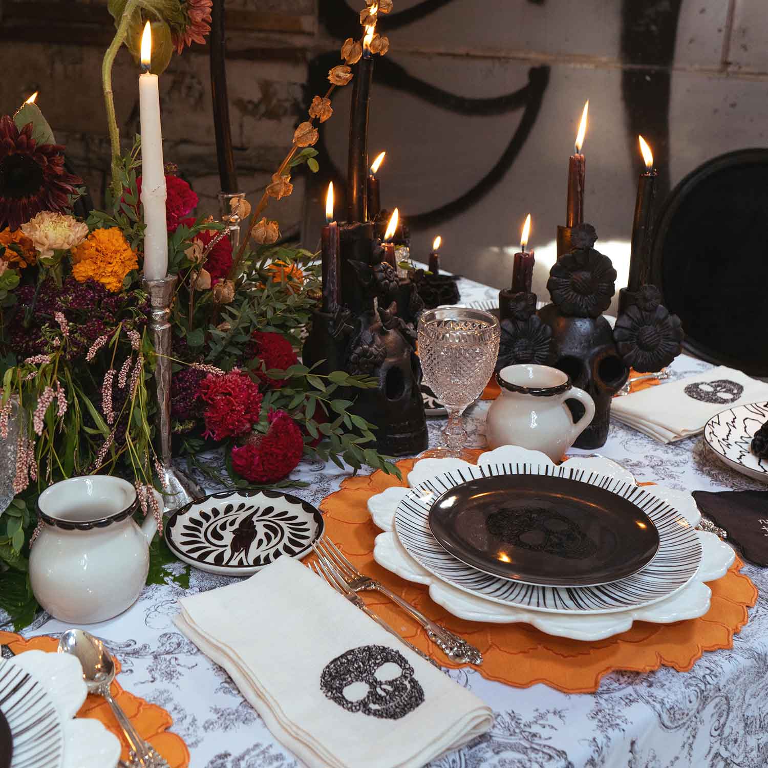 Vela Grande con Decoración de Flores de Cera en Color Negro.
